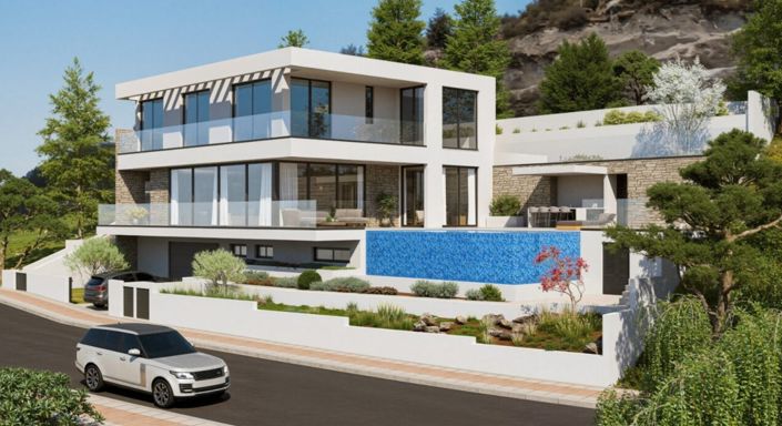 Designed with a contemporary and functional approach, the villa provides future homeowners with every modern comfort. The fully equipped ground floor includes a gym, sauna, cava, storage room, mechanical room, utility/laundry area, and one en-suite bedroom, ensuring practicality and flexibility for daily living or guest accommodation. The villa is fitted with a VRV climate control system, elevator, fireplace, and a dedicated BBQ area. Outdoor spaces are thoughtfully designed, featuring a private swimming pool with outdoor shower, direct access to the landscaped garden, and covered verandas that enhance indoor-outdoor living. High-quality materials such as exposed concrete and local stone give the villa a modern yet timeless architectural character.