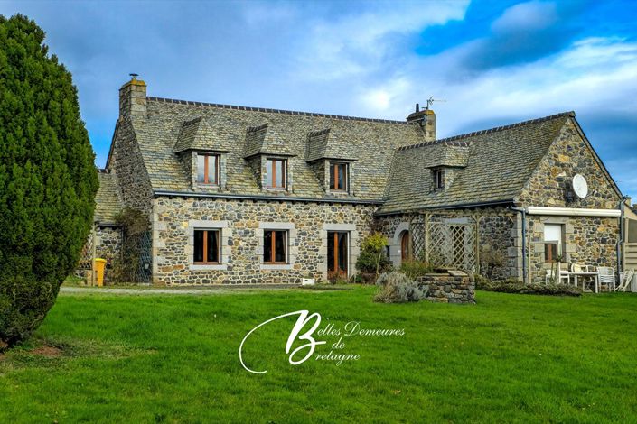 Sous sa toiture en ardoises de Locquirec, ponctuée de poutres apparentes, cette élégante bâtisse révèle un intérieur lumineux, chaleureux et de généreux volumes, au sein d'un environnement serein et verdoyant.