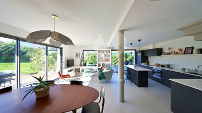 À la frontière directe de Biarritz, cette maison à l'architecture contemporaine, signée François Pairault, séduit par la justesse de ses lignes et la qualité de ses volumes.