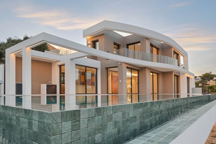 OverviewA sunlit Mediterranean villa on the Costa Blanca that combines tailor-made luxury with authentic comfort, private terraces and sweeping coastal views — an elegant retreat for year-round living. All prices are quoted in EUR.HighlightsDetached villa with private pool and generous sun terracesPanoramic sea and coastline viewsElegant open-plan living areas with high-quality finishesAbundant natural light through large glazing and thoughtful orientationLow-maintenance Mediterranean landscaping and outdoor entertaining spacesConvenient location close to beaches, restaurants and golfInteriorThe interior balances refined materials and warm textures to create a welcoming, light-filled home. Open living spaces flow effortlessly into dining and kitchen areas, encouraging relaxed everyday living and elegant entertaining. Bespoke finishes and careful detailing deliver a sense of understated luxury and lasting comfort.ExteriorOutside, terraces cascade from the house to a private pool and planted gardens designed for Mediterranean living. Multiple seating and dining areas, a built-in barbecue and sheltered corners create an all-year outdoor lifestyle, perfect for al fresco dining and sunset views.LayoutThe villa is arranged to prioritise privacy and social flow, with clear separation between living and sleeping areas and easy access from indoor lounges to external terraces. Practical storage and parking are integrated discreetly to preserve the sense of calm and space.SurroundingsSet on the Costa Blanca, the property is close to golden beaches, coastal promenades, acclaimed restaurants and quality golf courses. The local area offers a relaxed Mediterranean lifestyle with good schools, marinas and leisure amenities — ideal for families or a tranquil second home.