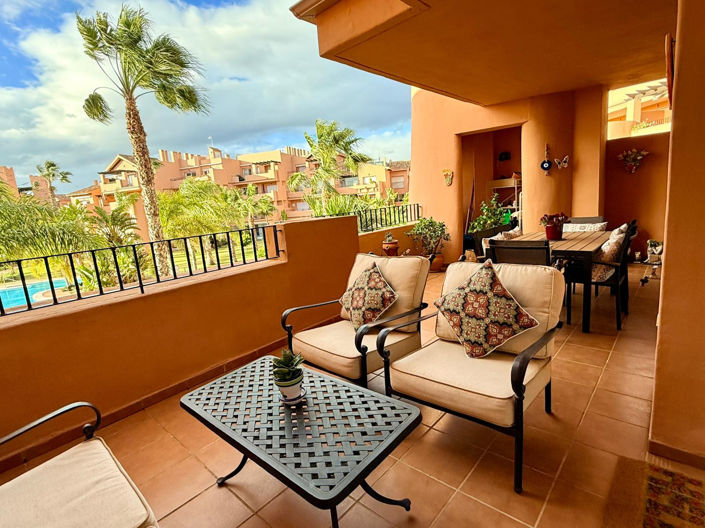 This spacious and beautifully presented first-floor apartment features two bedrooms and two bathrooms, offering stunning views over the communal pool and the 16th hole of the golf course. With its privileged location, this property is perfect for golf enthusiasts and anyone seeking a relaxing holiday home or a comfortable permanent residence in the Mediterranean climate.