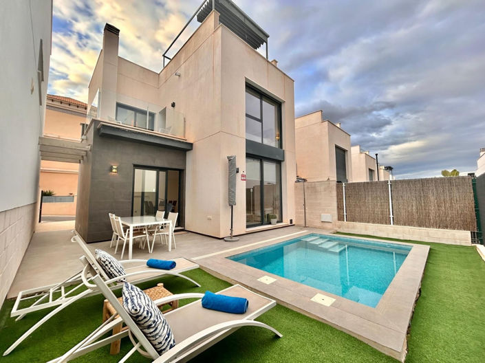 Fully furnished and equipped, this villa combines style and functionality. It is ideally located, 10 minutes from the beaches of Orihuela Costa, 5 minutes from the golf courses and Plaza de Villamartín, and 5 minutes from the Zenia Boulevard shopping center.