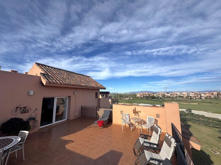 The property is located within Mar Menor Golf Resort, offering views over the swimming pool (No. 12), the golf course and the lake.Situated on the 3rd floor (top floor) with lift access, it is the only penthouse in this stairwell.