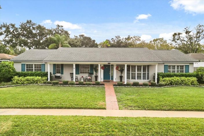 Welcome home to one of the established Maitland neighborhoods in a pristine location close to everything, Maitland Groves. A lovely brick walkway invites you up to a charming entrance with a bricked front porch. A four- or five-bedroom, four-bath home features nearly 3,000 square feet with a generous flex space, checks all the boxes. The spaces have been opened with living spilling into dining and a bay window adding charm to an ideal gathering room to entertain in. Custom tile throughout for seamless design with an abundance of light making the spaces inviting and easy to relax in. Kitchen is updated with custom 42-inch wood cabinets, custom moldings, stainless appliances with new dishwasher, gas range and oven, granite counters with counter seating, and unbelievable storage and cabinet space. Florida room spans the back of the house with a bricked floor, a wet bar and a dedicated office/bedroom. Updated primary bedroom with a large walk-in closet. Main bath with dual sinks and new rainfall shower heads, tower storage cabinets, seamless glass with walk-in shower, stone floor and custom tile. Outside patio enjoys a paver deck with large Florida pool and plenty of green space with room to grow. Other updates include roof (2021), solar energy system so energy bills are low, recently painted in select areas, wood laminate floors in all bedrooms, renovated second and third baths, spacious indoor laundry and mudroom for organization, fenced yard, recessed lighting in living spaces, re-plumbed, plantation shutters, 2021 pool pump, pool converted to saltwater system and new garage door. If you need space, this has it. Terrific schools, close to Interstate 4, downtown Maitland which is home to Lake Lily with a weekly farmers market, independently owned Enzian Theatre, world-class restaurants and fantastic community parks home to many community events.
