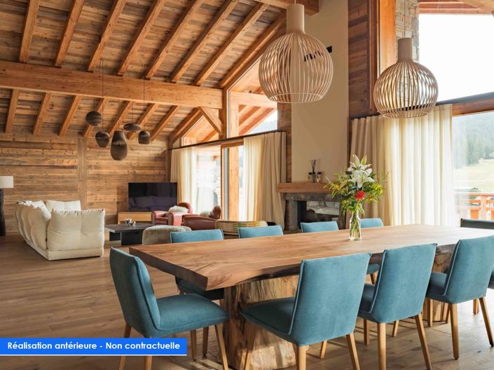 Au cœur du prestigieux domaine des Portes du Soleil, entre le lac Léman et le Mont-Blanc, ce chalet neuf d'exception révèle une interprétation contemporaine et raffinée de l'art de vivre alpin, alliant volumes généreux, confort absolu et panoramas à couper le souffle. Bénéficiant d'une position privilégiée dans un hameau dominant la très prisée station des Gets, ce luxueux chalet offre 2 larges terrasses pour profiter d'une vue dégagée sur les pistes et les sommets, ainsi que d'un ensoleillement optimal, quelle que soit la saison. Développée sur trois niveaux, cette propriété a été pensée dans les moindres détails pour associer volumes généreux et finitions premium, pour créer un cadre chaleureux et résolument élégant. Le cœur du chalet, desservi par un ascenseur, est un espace de vie exceptionnel, baigné de lumière naturelle, où une cheminée monumentale s'impose comme un élément central et emblématique. Elle structure la pièce et crée une atmosphère conviviale et raffinée, idéale pour se détendre après une journée en montagne ou partager des moments privilégiés en famille et entre amis. La cuisine ouverte, conçue par l'agenceur d'espaces Signature d'Intérieur (), allie design contemporain, matériaux nobles et électroménager haut de gamme, en parfaite harmonie avec le séjour. L'espace nuit se compose de cinq chambres en suite, offrant à chacun intimité et confort. Deux suites parentales, véritables cocons, disposent de leur dressing et de leur salle de douche élégantes, sublimées par des choix de matériaux et des finitions soignés. Pensé comme un véritable lieu de bien-être, propice aux soirées conviviales et aux moments de détente, le chalet intègre une salle de sport, ainsi qu'une salle TV/cinéma. Les espaces annexes, fonctionnels et esthétiques, complètent ce bien d'exception : hall d'entrée généreux, rangements dédiés au matériel de ski, finitions boisées et éclairages subtils renforcent l'atmosphère cosy et luxueuse du chalet. Pour parfaire l'ensemble et profiter pleinement de ce chalet d'exception dès la remise des clés, un forfait pour l'ameublement est inclus, offrant aux futurs propriétaires la liberté de composer un intérieur sur-mesure, selon leurs envies. Idéalement situé dans l'un des hameaux les plus recherchés des Gets, ce chalet profite d'un environnement calme, d'une vue imprenable sur le village, les pistes et les montagnes environnantes, tout en restant à proximité immédiate des commodités et des remontées mécaniques. Atout rare et précieux : le chalet dispose d'un garage privé, situé au cœur du village, pour un accès aux pistes des Chavannes en seulement cinq minutes à pied. Plans sur demande. Livraison fin 2027 Frais de notaires réduits