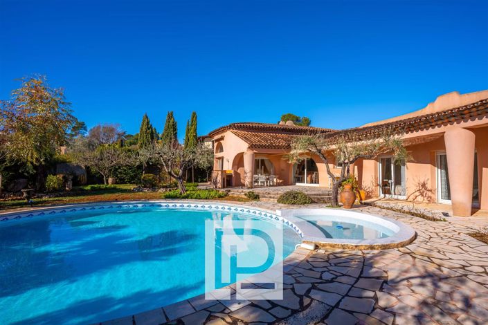 Exposée plein Sud et sans aucun vis à vis, la villa est érigée sur un magnifique terrain plat et paysagé de 1700m² complanté d'oliviers. Une piscine circulaire de 9 mètres de diamètre vient sublimer cet extérieur.