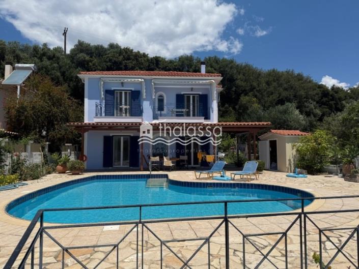 Two-story villa in Sarlata, Kefalonia—a unique opportunity to purchase in one of the island’s most peaceful and scenic areas. The furnished and fully equipped villa is situated on a lush 512 sq.m. plot and offers a total area of 152 sq.m., making it ideal for comfortable living and enjoying the captivating views provided by its location.The residence features 3 bedrooms, a spacious open-plan living room and kitchen, 3 bathrooms, and a WC. Built in 2001, it is equipped with all modern amenities, including oil autonomous heating, a fireplace, A/C, a 48 sq.m. swimming pool, a beautiful garden with sea views, aluminum window frames, double glazing, security door, built-in wardrobes, storage room, insect screens, boiler, and an internal staircase connecting the levels.