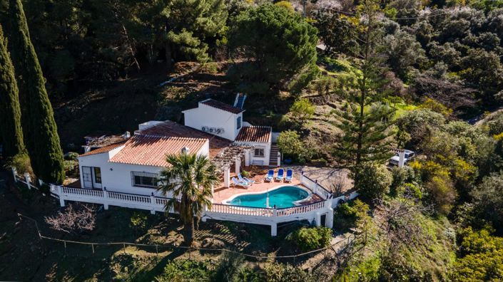 La propriété se distingue par sa conception lumineuse et ses matériaux de première qualité. A l'extérieur, la propriété dispose d'une spectaculaire piscine privée, idéale pour se rafraîchir tout en profitant d'une vue imprenable sur le paysage naturel. Le terrain est agrémenté d'une variété d'arbres fruitiers matures et dispose d'un parking privé pour plusieurs véhicules avec une route d'accès bétonnée.