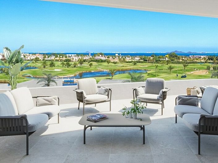 Get More Than a Home: A Furniture & Lighting Package is on Us! Discover a new project at Serena Golf Resort, featuring 2-bedroom, 2-bathroom apartments with breathtaking views of the lakes, golf course, and the Mar Menor sea. Each property boasts an open-plan living area with seamless access to spacious terraces starting from 83m2, along with parking, a storage room, and access to a communal pool. Penthouse options are also available, offering solariums ranging from 62 to 87m2.