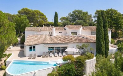 A l’intérieur, des volumes exceptionnels, une belle luminosité et des prestations de luxe sont ses atouts majeurs! Le rez-de-chaussée se compose d'une très spacieuse pièce à vivre avec un salon ouvrant sur la terrasse, la piscine et la vue. Quelques marches le sépare d'une belle cuisine Américaine, d'un espace salle à manger et d'un salon TV/bibliothèque. On y trouve également 4 chambres en suite, chacune avec accès direct sur la terrasse, 1 bureau et une grande buanderie. Deux chambres de maître très spacieuses avec dressing et salles de bain en suite se trouvent au premier étage. Un sous sol aménagé de 166m² offrant diverses possibilités telles que: home cinéma ou salle de sport, ainsi qu'une grande cave à vin complètent ce bien.