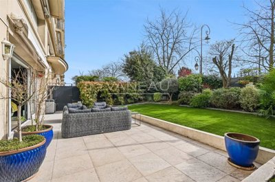 Dans un très bel immeuble des années 30, nous vous présentons un rez-de-jardin de 146 m² (142 m² Carrez) et son jardin de 140 m² exposé plein sud et au calme donnant sur le bois de Boulogne à proximité immédiate des transports et des commerces. Il se compose d'une grande pièce de vie ouverte sur une cuisine aménagée et équipée, 3 chambres dont une suite parentale avec une salle de douche, une salle de bain, des toilettes séparées, et un dressing. Entièrement rénové et optimisé par un architecte. Une cave et un parking complètent ce bien.