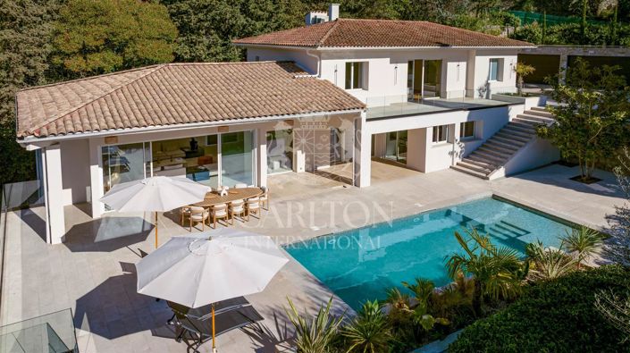 Idéalement située dans un quartier prisé de Mougins, cette villa d’exception, entièrement rénovée en 2024 par un architecte d'intérieur avec des matériaux de grande qualité, allie charme et raffinement contemporain. Baignée de lumière grâce à son exposition plein sud, elle offre une vue imprenable sur les collines environnantes.