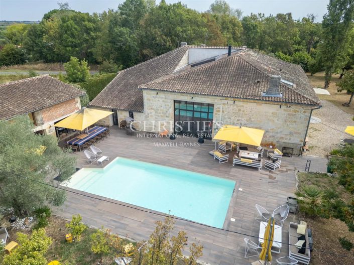 À seulement 30 minutes de Bordeaux en voiture et accessible par le Ter depuis la gare de Macau, cette propriété de prestige développe environ 470 m² habitables, au cœur des vignobles du Médoc.