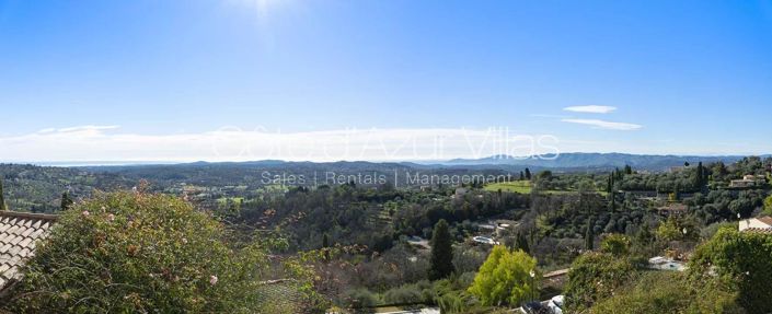 Baignée de lumière à toute heure grâce à son exposition plein Sud, la propriété surplombe les toits du village et dévoile un panorama spectaculaire, embrassant les collines environnantes et la mer, de Nice jusqu’au golfe de la Napoule. Un décor vivant, changeant au fil des heures et des saisons.