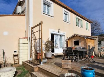 A Laroque, magnifique village des Cévennes proche de Ganges, maison en copropriété de 85 m2 habitables sur un terrain de 300 m2. Au calme, nichée au fond d'une impasse au sein d'une petite copropriété de 8 lots, cette villa offre en rez-de-jardin, une cuisine équipée ouverte sur un séjour d'environ 42 m2 avec un accès direct sur une belle terrasse en bois et le jardin. A l'étage, un palier, 3 chambres et une salle de bains. Maison climatisée. Garage.Produit Rare A Visiter Sans Tarder !!!Les informations sur les risques auxquels ce bien est exposé sont disponibles sur le site géorisques :