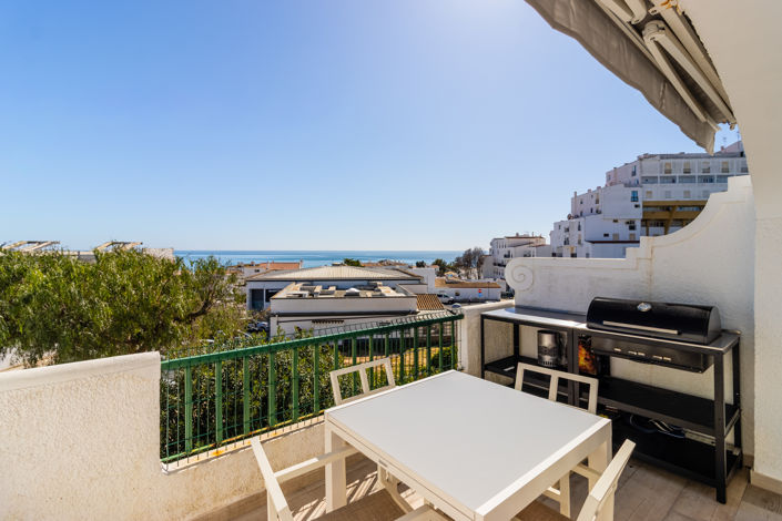 This beautifully modernised two-bedroom townhouse with sea views is ideally situated within walking distance of the beach and all amenities in Praia da Luz.