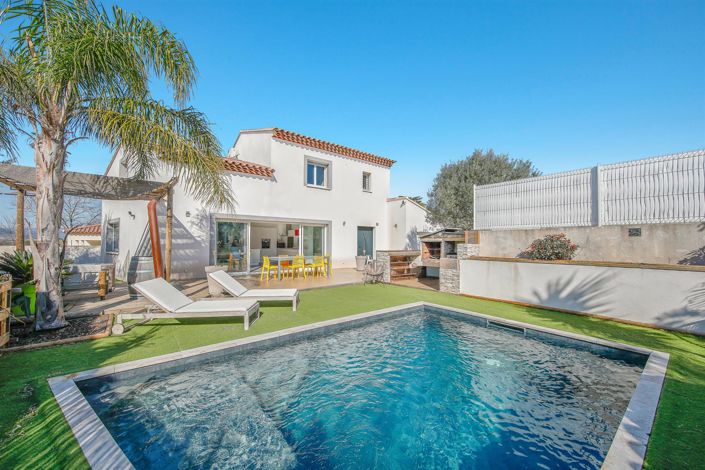 À l’extérieur, vous profiterez d’un terrain de 502 m2, parfaitement aménagé, avec une piscine idéale pour les beaux jours, une cuisine d'été ainsi qu’un garage et deux places de parking offrant confort et praticité.