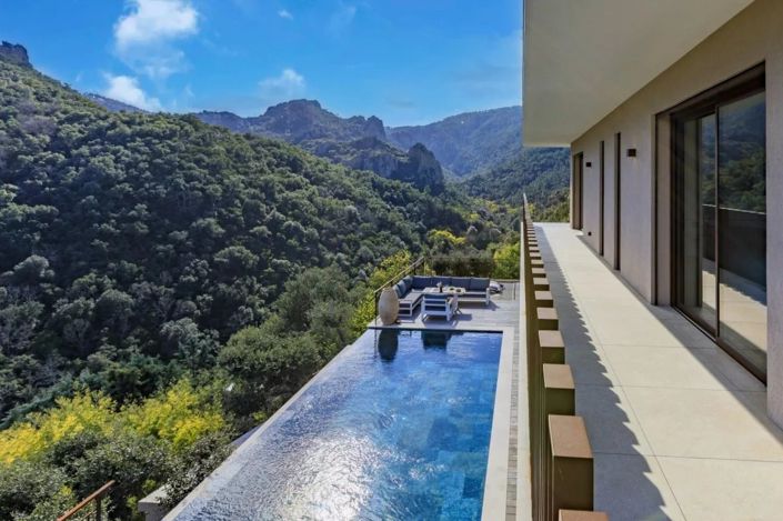 Le rez-de-chaussée se compose d’une entrée, d’un vaste séjour/cuisine équipée d’environ 100 m² ouvrant sur la terrasse et la piscine à débordement, d’un cellier, d’une buanderie, de toilettes invités, d’une chambre avec dressing et salle d’eau/wc. Le tout desservi par de beaux dégagements et finitions soignées.