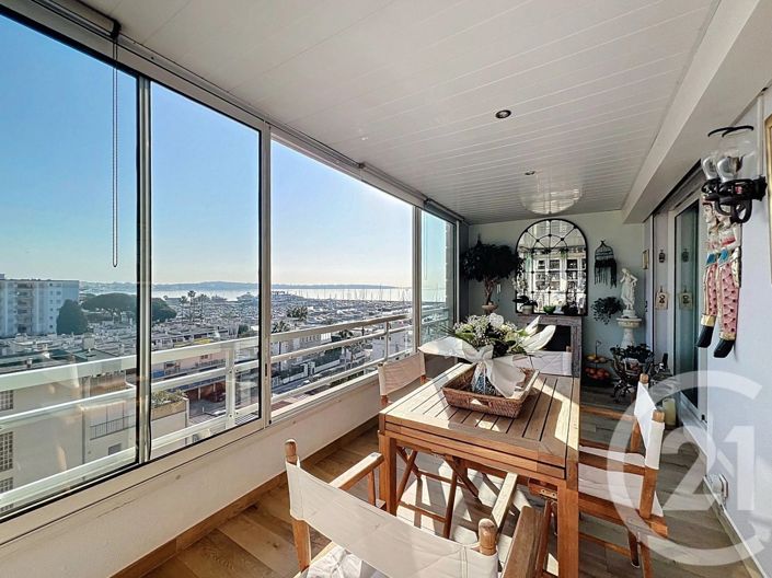 Co-Exclusivité. À deux pas des plages et du port de Golfe-Juan, au 5 ème et dernier étage d'une résidence de standing recherchée avec piscine et gardien, se situe ce superbe appartement 4 pièces en duplex, en excellent état. Il s'ouvre sur une entrée avec placard, une cuisine ouverte entièrement équipée et un séjour prolongé par une élégante véranda d'environ 14 m², offrant une vue magnifique sur les montagnes et la mer. Un wc indépendant complète ce niveau. À l'étage, un escalier mène à l'espace nuit composé de trois chambres, dont une avec dressing, ainsi qu'une belle salle de douche avec wc. Un double garage fermé vient compléter ce bien. Posez vos valises et profitez immédiatement d'un cadre de vie privilégié, à pied de toutes les commodités et du littoral. Montant estimé des dépenses annuelles d'énergie pour un usage standard entre 670.0 € et 960.0 €, indexées à l'année 2021 (abonnements compris). Bien proposé par Philippe Huynh Ei, agent commercial (Rsac )