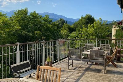 Dans le charmant village typique de Saint-Laurent-de-Cerdans, authentique maison en pierre 4 faces d’environ 124 m2 habitable, pleine de caractère et de charme. Édifiée sur un terrain de 970 m2, sur deux niveaux, elle offre un beau séjour-salon baigné de lumière donnant accès à une terrasse exposée plein sud avec une vue panoramique exceptionnelle sur les collines environnantes et la majestueuse chaîne du Canigou, le tout surplombant la rivière pour un cadre paisible et inspirant. Vous profiterez également d’une cuisine séparée, de trois chambres confortables, d’une salle d’eau avec Wc, d’une buanderie, ainsi que d’un atelier qui pourra, selon vos besoins, être aménagé en chambre supplémentaire ou en espace de bricolage. Le chauffage central à granulés, le poêle à pellets ainsi qu’un poêle à bois assurent un confort optimal en toute saison. Idéalement située, la maison se trouve à seulement une heure des plages, vingt minutes du golf de Falgos et deux heures de Barcelone. Un bien rare sur le marché, parfait pour une résidence principale, secondaire ou un investissement locatif.