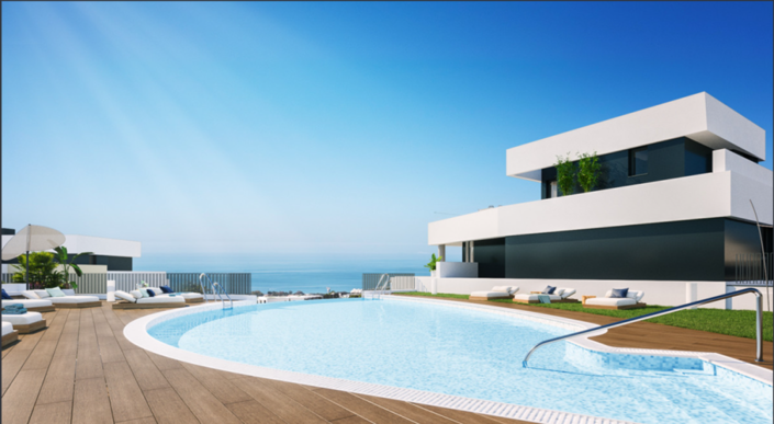 At the heart of the development is a beautiful communal swimming pool surrounded by landscaped gardens with Mediterranean vegetation, creating a peaceful and attractive environment for residents.