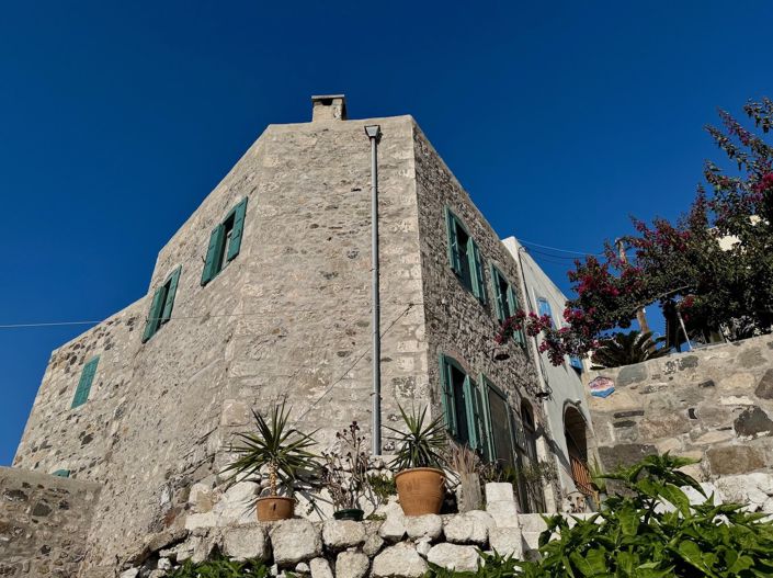 This traditional townhouse in Madraki is ideal for those wishing to experience the authentic Dodecanesian lifestyle on an island unmarred by mass tourism.Originally built in the early 20th century, the townhouse underwent a complete restoration in 2017 by its current owner, a German-born visual artist. It unfolds over two floors, which can function independently, as both offer a living/dining area, a kitchen, one bedroom and one bathroom. The floors communicate via an internal staircase. The building has retained much of its original character, but has been upgraded to offer many modern amenities, such as double-glazed frames, with shutters and some featuring fly-nets. Air-conditioning units in the bedrooms and a wood burner in the living room will help regulate temperature, but the thick stone walls mean that the house is warm in the very mild winter and cool during the summer months.The welcoming entrance opens to a bright living and dining area, a fully equipped kitchen, a cosy bedroom, and a sleek bathroom—all with polished concrete floors. Designed as a self-contained apartment with a private entrance, it’s perfect for guests or rental income. The living space, the heart of the home, blends rustic charm with original features like a wood-stove fireplace, an antique oven, exposed stone walls, and wooden beams, while a window frames views of the garden alley.The kitchen showcases bespoke Moroccan Moshrabi woodwork and a durable concrete countertop, paired with modern appliances for effortless living. Nearby, the bathroom balances minimalist style and function with a concrete sink and a streamlined shower. The bedroom offers comfort with a traditional raised Moni platform for sleeping, built-in storage, and an air conditioner, all while capturing a glimpse of the sea.A separate grand entrance leads to a spacious hallway, currently used as an exhibition space but adaptable as a gallery or transitional area. With its generous proportions and connection to the upper floor, it adds both elegance and versatility to this inviting home.The first floor, once the home’s piano nobile, strikes a balance between grandeur and functionality—its warm wooden floors and sunlit spaces are framed by breathtaking views of the village and the sea. A charming landing features a built-in kitchenette (complete with an electric cooktop, fridge, and sink), discreetly enabling this level to function as a separate flat. A skylight bathes the area in light and hints at potential rooftop access. The spacious studio, currently an artist’s workspace, triples as a third bedroom with its convertible sofa bed, illuminated by three generous windows.The tranquil main bedroom centres around a traditional Moni platform, offering elevated sea views and hidden storage beneath, complemented by a Moshrabi wardrobe and air conditioning. Nearby, the main bathroom blends modern simplicity with rare indulgence—a concrete sink, skylit bathtub, and heated floors create a serene retreat.The outdoor area of the townhouse features a veranda with built-in concrete seating under a pergola. The outdoor kitchen is ideal for al fresco dining and entertaining. There is also an adjoining plot, now adorned with vintage tiles and lush planting, but which is buildable, subject to obtaining the necessary permits, which is included.Nestled on the cobbled, pedestrian-only streets in Mandraki, the property emanates a unique sense of serenity, as there are no cars or motorbikes passing by. Having said this, the property is just a short walk from the beach and the port (with ferry connections to Kos and Rhodes), as well as from the shops and restaurants.Rental potentialNisyros has gained popularity in recent years as a destination for those who want to venture off the beaten path and taste the 'authentic' Greek experience on an island that has retained much of its traditional character. The versatility of this townhouse, which offers two floors that can function independently, means that it can be utilised for a 'mixed' use, where one of the floors can be rented out. At the same time, the owner stays on the other floor, or both floors can be rented to different parties, while the whole house can accommodate a larger party.Location - DistancesLocated between Kos and Tilos, the island of Nisyros is famous for its volcano. It is a relatively small, circular island with a diameter of approximately 8 km. The volcano is situated in the middle of the island, and its caldera is ±4 km wide. The island is connected by ferry to Rhodes, Piraeus and Kos. Especially during the summer months, there are several scheduled daily connections to Kardamena port on Kos. The Stefanos crater of the volcano is the most popular sight on the island, but there are also many churches to visit, as well as a nice archaeological museum. Nisyros is perhaps one of the last destinations in Greece that can be enjoyed mostly on foot.Chochlaki Beach: 150 mMandraki Beach: 700 mMandraki Port (Ferry connections): 1 kmStefanos Crater: 9.5 kmEmporeios: 10 kmPachia Ammos Beach: 11 km