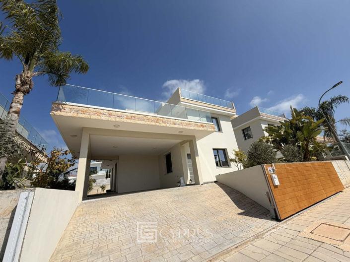 This brand-new luxury four-bedroom villa in Saint George, Peyia (Agios Georgios) seamlessly blends modern design with breathtaking panoramic mountain and sea views. Built to the highest standards, the villa offers a serene lifestyle in one of Paphos’s most sought-after areas. The ground floor features a spacious open-plan layout with a fully equipped kitchen, elegant dining area, and cozy living space complemented by a fireplace and guest toilet. One bedroom with an en-suite shower is also conveniently located on this level, ideal for guests or family. Upstairs, the master bedroom boasts an elegant en-suite bathroom, while the two additional bedrooms each include en-suite showers, offering privacy and comfort for all residents. The entire property is fully air-conditioned using an advanced inverter system that provides high energy efficiency with low power consumption. With its stylish architecture, premium finishes, and unbeatable views, this villa is a stunning choice for luxurious Mediterranean living.