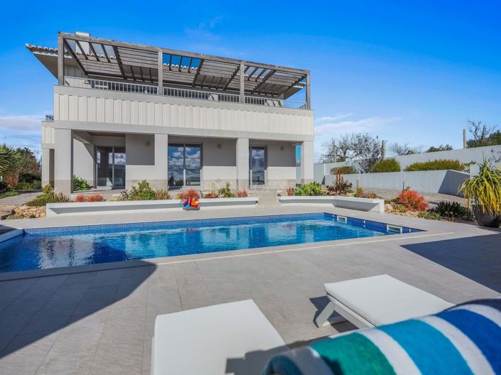 Située en position dominante dans la campagne, à proximité de São Bartolomeu de Messines, cette villa contemporaine spacieuse offre un équilibre harmonieux entre intimité, confort et facilité dentretien. Les vues panoramiques sétendent sur les collines environnantes jusquà la côte, tandis que la propriété a été soigneusement conçue pour un art de vivre serein tout au long de lannée en Algarve.