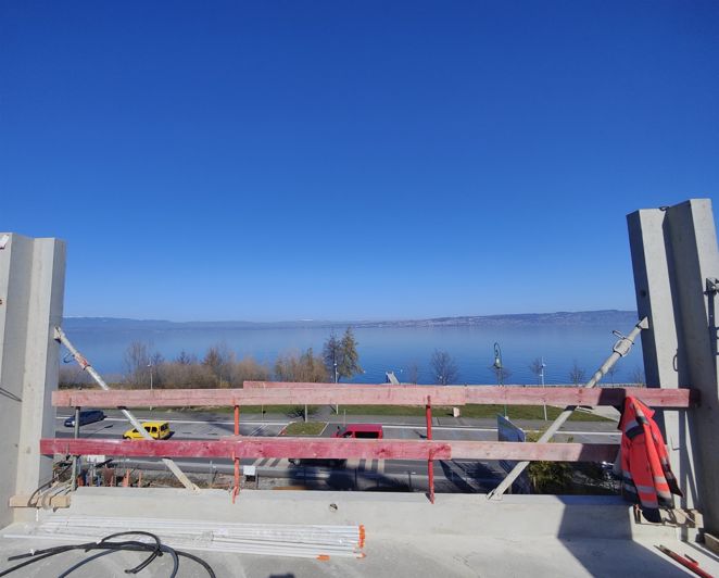 L’appartement se compose de trois chambres, d’une salle de bain, d’une salle d’eau et de deux Wc, idéal pour une famille ou pour recevoir des amis. Les pièces de vie s’ouvrent sur un balcon avec une vue panoramique sur le lac, apportant lumière et sérénité. Les prestations sont soignées : carrelage 60x60?cm dans le séjour, parquet dans les chambres, chauffage au sol et volets électriques dans toutes les pièces. Une cave est incluse, et garage et parking sont proposés en option.