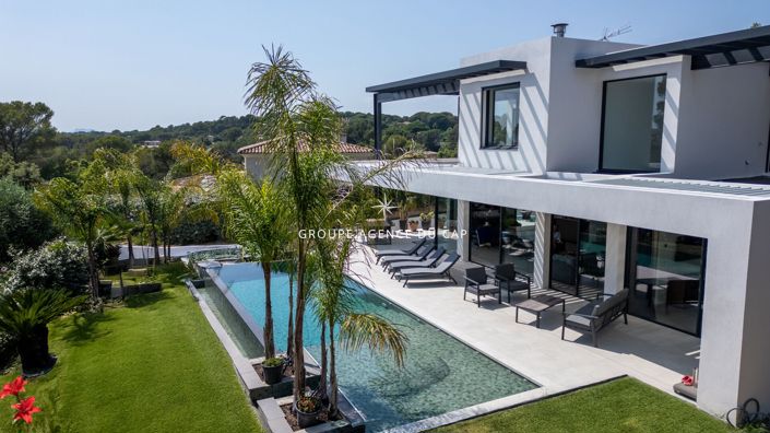 Découvrez cette somptueuse villa contemporaine située dans un domaine sécurisé à Saint-Raphaël Valescure. Construite en 2025 sur un terrain paysager d'environ 1 200 m² avec forage, elle offre des prestations haut de gamme. Elle se compose de 4 chambres en suite, dont une de plain-pied, chacune avec salle d'eau et Wc privatifs. Cuisine américaine aménagée et équipée, séjour lumineux exposé sud, grandes baies vitrées toute hauteur, plusieurs terrasses avec vue dégagée. Confort assuré par un système de chauffage/clim en gainable et au sol via pompe à chaleur. Domotique avancée, piscine miroir chauffée avec plage immergée, entretien simplifié. Un vaste sous-sol accueille jusqu'à 5 véhicules, ou possibilité d'extension de la surface habitable. Carport avec borne de recharge de plain pied et stationnements supplémentaires. À proximité des plages, du centre-ville, des golfs et d'un accès rapide à l'autoroute. (5.05 % d'honoraires Ttc à la charge de l'acquéreur.)