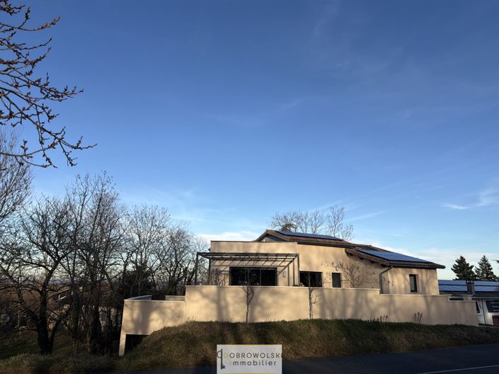Découvrez cette maison batie en 2016 d'une surface habitable d'environ 230m2 sur 2 niveaux proposant des prestations de haut vol, composée d'une cuisine aménagée et équipée ouverte sur un salon et un séjour avec dans son prolongement une terrasse avec vue sur le pilat, 7 chambres dont 1 parentale équipée de sa salle de bains et Wc privatifs ainsi que de son dressing,de deux salles d'eau supplémentaires, d'une buanderie. Vous accèderez également depuis l'intérieur de la maison au local artisanal d'une surface d'environ 269m2 composé d'une cuisine, d'une salle de réunion, de sociaux, d'un bureau, d'un espace archivage. La propriété dispose d'un terrain de 1500m2 environ avec accès aisé pour les véhicules fussent-ils de grandes tailles. La maison est équipée de multiple système de chauffage et climatisation : chauffage au sol sur 2 niveaux, chauffage de l'ECS via la pompe à chaleur, climatisation réversible, présence de panneaux photovoltaiques d'une puissance de 17Kw les menuiseries sont en Pvc et Alu double vitrage, l'alimentation électrique de la maison est monophasée, celle de l'atelier triphasée l'assainissement est collective via le tout à l'égout. Vous l'avez bien compris, il s'agit d'un bien exceptionnel aux capacités d'accueil et perspective d'évolution sans limite proposant déjà un niveau de confort très élevé.