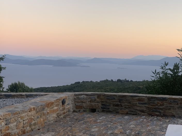 The Surrounding Area is fully landscaped, it has a built-in stone BBQ, a large stone-paved courtyard with an excellent view towards the sea and stone walls that form different levels and delimit the greenery . The entrance to the plot is stonebuilt and imposing with a large traditional wooden gate. The entire building and the surrounding area has special architectural lighting that highlights the hand-made stone texture of the entire project. At the same time, planning has been done for the construction of a swimming pool oriented towards the magnificent view.