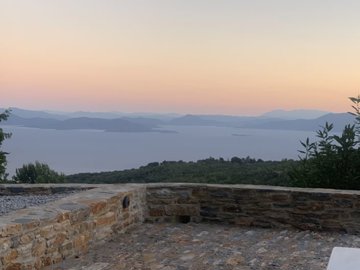 Stone Detached House of special architecture, in a unique spot on the outskirts of the settlement of Vyzitsa. It offers an amazing and unobstructed view to the sea and the surrounding green forests.