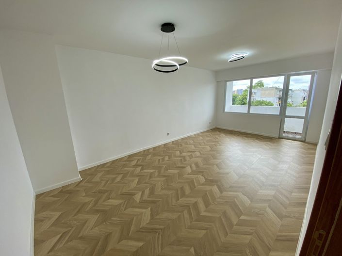 Two-room apartment in the Troshevo district, very close to Dobri Chintulov Primary School. The apartment is located on the 6th floor of a total of 8 in a well-maintained building with controlled access. The apartment faces east and west, has a built-up area of 60.59 m² and features the following layout: large living room of 24 m², bedroom of 13 m², kitchen of 10 m², L-shaped hallway, shared bathroom, and cellar. The living room has a private terrace. The apartment has been fully renovated and is offered as move-in ready.