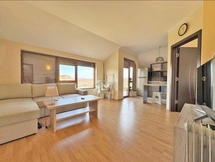 Appartement de deux chambres dans le complexe moderne Elitonia 2 à Ravda. Le Appartement est situé au 4e étage et a une surface habitable de 59 m2. Il se compose d'un salon avec cuisine, une chambre à coucher séparée, une salle de bain et un Balcon donnant sur les champs environnants.