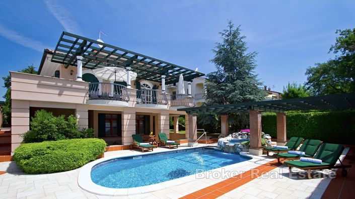 Discover an exclusive luxury villa located in an attractive environment in an excellent, highly sought-after location in the center of the city of Porec in the location of Finida, only 970 m from the sea, beautiful beaches and the historic center of the city.
