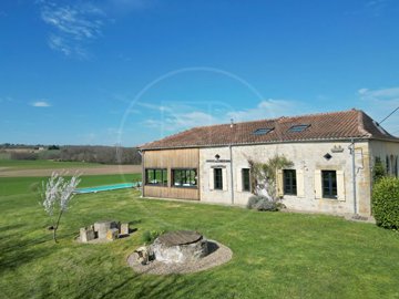 À l'extérieur, la propriété continue d'impressionner. La piscine et la terrasse environnante offrent un cadre idéal pour profiter de la sérénité de la campagne, tandis que le terrain garantit intimité, espace de détente et de réception.