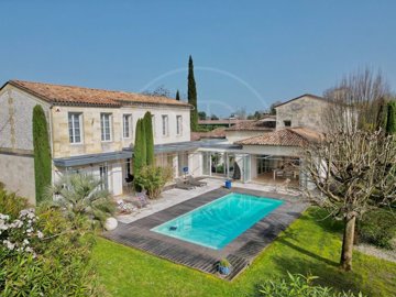 Située dans un environnement recherché de Libourne , cette propriété de caractère de plus de 400m2 offre des prestations de grande qualité . Derrière une élégante façade en pierre, cette propriété conjugue le charme de l'ancien et une architecture contemporaine , organisé autour d'un patio et tourné vers la terrasse et la piscine . Les volumes généreux, la luminosité omniprésente et l'articulation fluide entre intérieur et extérieur confèrent à ce bien immobilier un cadre de vie privilégié.