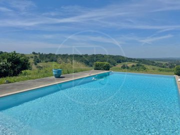 La tour, construite en 2007, s'intègre harmonieusement dans le paysage, donnant l'impression qu'elle fait partie de la propriété d'origine. Elle dispose de deux chambres avec une salle d'eau et d'une cuisine extérieure, offrant de superbes vues sur la piscine à débordement. Le jardin, très privé, garantit une tranquillité absolue sans nuisances sonores ni visuelles à proximité. De plus, il est possible d'agrandir l'espace de vie en aménageant la grange adjacente. (6.00 % d'honoraires Ttc à la charge de l'acquéreur.)