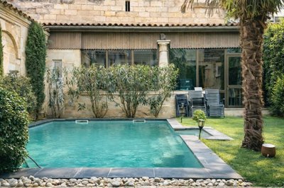 À l'arrière, le charme opère : un jardin intime offre un véritable cocon de verdure, avec piscine, au calme absolu. Une dépendance aménagée en appartement T2 avec entrée indépendante permet d'envisager un espace d'accueil, un projet locatif ou un bureau professionnel avec entrée indépendante dans la rue parallèle.