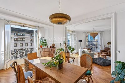 Parquet, moulures et cheminée belle hauteur sous plafond volumes équilibrés et harmonieux.