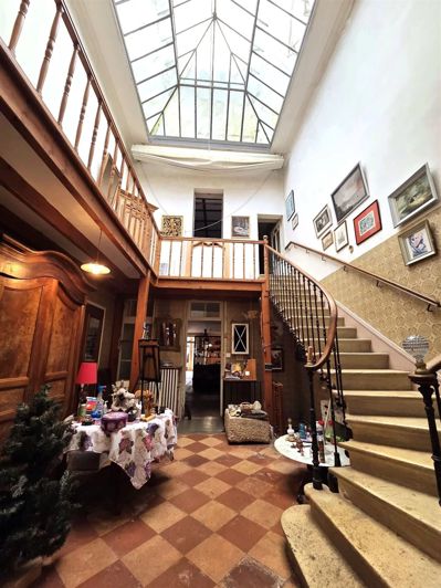 Rez-de-chaussée : Une majestueuse pièce de vie d'env. 47 m² s'ouvrant directement sous les célèbres couverts marchands (ancien commerce). Le cœur de la maison s'articule autour d'une pièce unique baignée de lumière grâce à un puits de jour de type verrière. Ce niveau comprend également un salon, une cuisine, une salle d’eau et des toilettes.