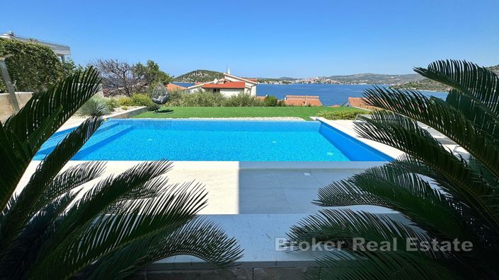 A beautiful newly built villa with a pool and an open sea view is offered for sale near the town of Rogoznica, located in a cul-de-sac in a beautiful micro-location where predominantly modern holiday homes are situated, just 100 meters from the beautiful Adriatic Sea.