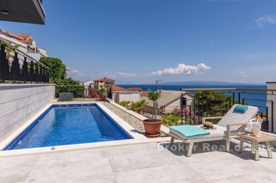 A luxury villa with a panoramic view of the sea and islands is for sale on the southern side of the island of Ciovo. Its 400 m² of living space is situated on a plot of 537 m². All rooms are distributed over three floors, while the surroundings of the villa include various amenities.