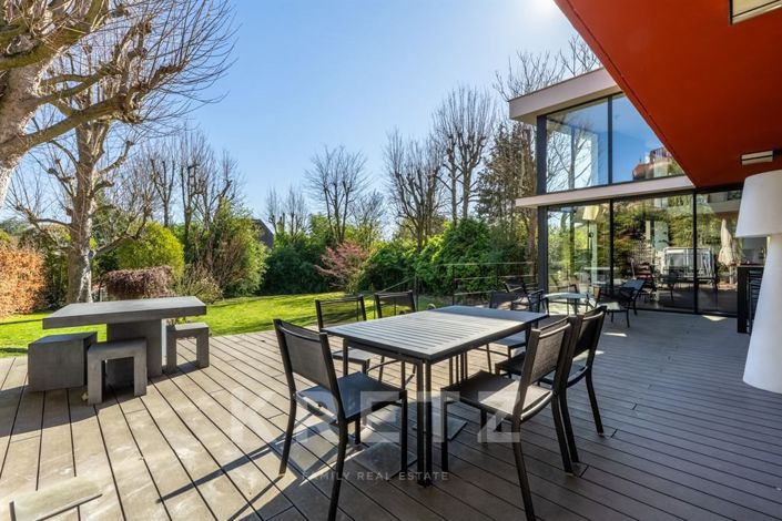Signée par un architecte et réalisée en 2010, cette propriété contemporaine déploie plus de 400 m² dans un écrin de verdure. Pensée comme une véritable maison de lumière, elle séduit par ses volumes spectaculaires, son esprit loft et son dialogue permanent avec le jardin.