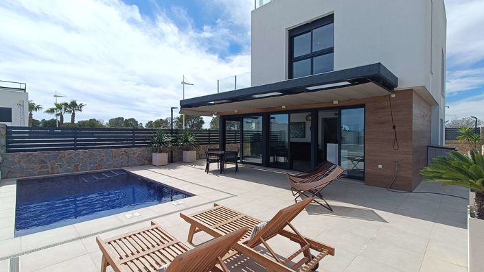 Superbe villa moderne située dans le quartier prestigieux et très prisé de La Finca, offrant un vaste sous-sol avec garage, une piscine privée et un solarium sur le toit offrant une vue spectaculaire à 360 degrés sur le paysage environnant.
