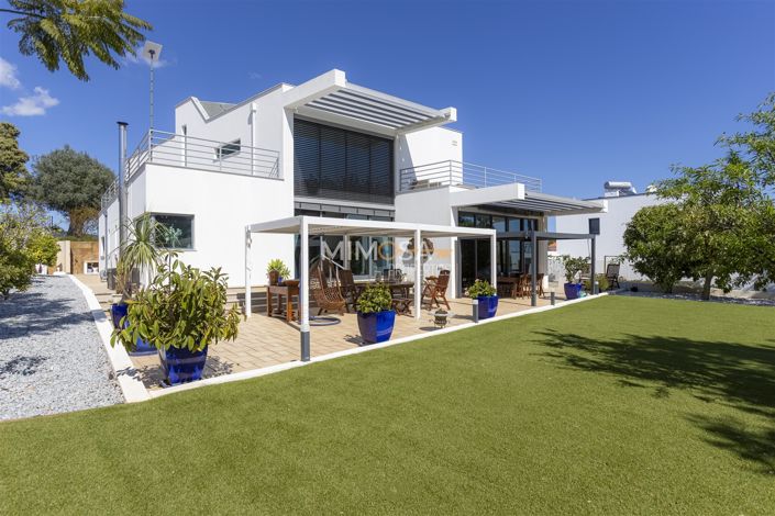 Equipped with solar panels and a modern hot-water system, the villa provides energy-efficient living. Air conditioning in every room ensures comfort throughout the seasons.