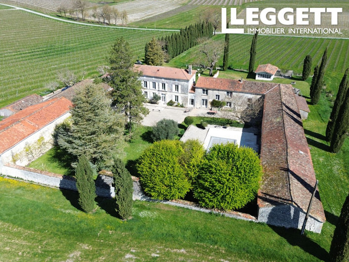 Set among the vineyards of Grande Champagne, this charming, spacious former Cognac estate offers privacy without isolation, just minutes from lively Châteauneuf-sur-Charente. Renovated over time, it comprises a generous main house, an adjoining cottage (independent or connected), and a separate 4-bedroom cottage. High ceilings and beautiful local stone create a light, airy feel throughout. In total, 8 bedrooms. A striking double-height living space with mezzanine and large fireplace with wood burner is a standout feature. Outside, a wraparound garden and an elegant central courtyard with pool provide superb outdoor living. Substantial barns (with potential), garage and large workshop, plus ample parking. Fibre internet installed. Ideally located: 1h15 to Bordeaux, 25 min to Angoulême, 20 mins to Cognac town and under 1h to Atlantic beaches.