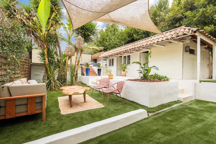 Édifié sur un jardin privatif de 500 m², le bien propose des extérieurs pensés pour la convivialité et la détente.