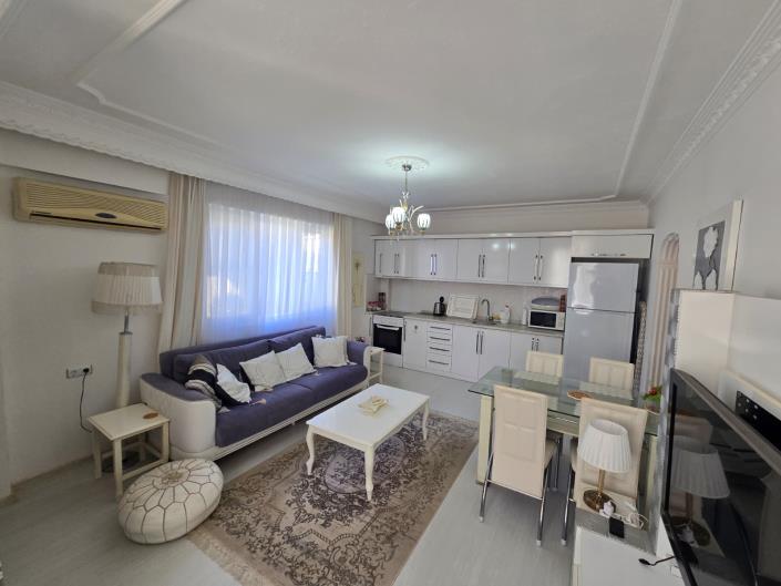 Modern and luxury 2- bedroom apartment for sale on complex with a large shared swimming pool,security located in a central location and close to Altinkum beach where you can find plenty of supermarkets, local shops, cafe and restaurant as well as an open pazaar.. It is also close to the minibus route. It is offered to the real estate market fully furnished and ready to move in.